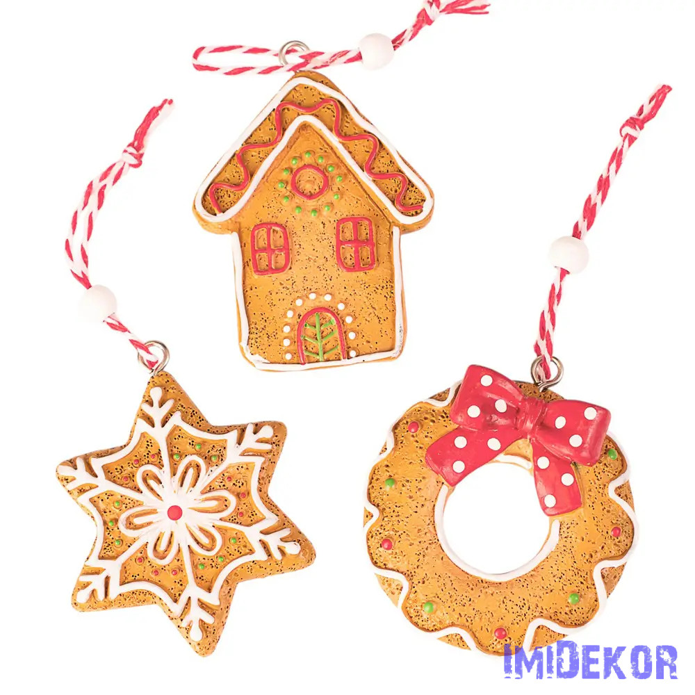 Mézeskalács dísz szett, polirezin, 6 x 5cm, kreatív felhasználásra vagy karácsonyfára