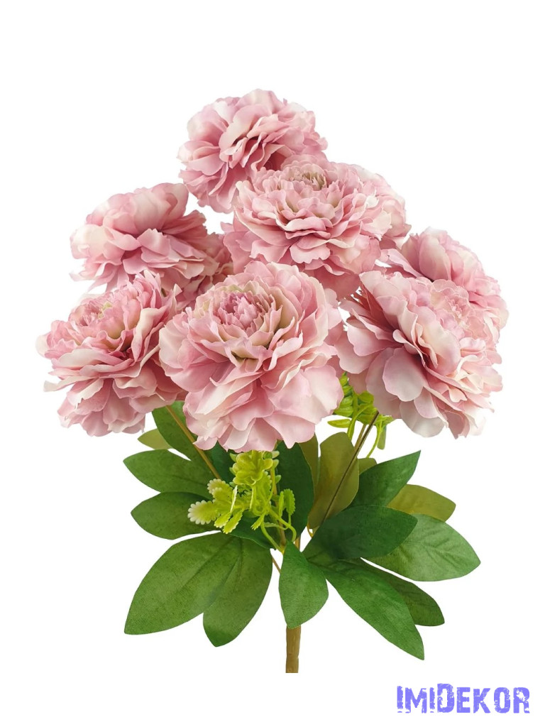 Fodros szirmú 9 nyílt fejes bazsarózsa csokor 42cm - Fáradt Rózsaszín