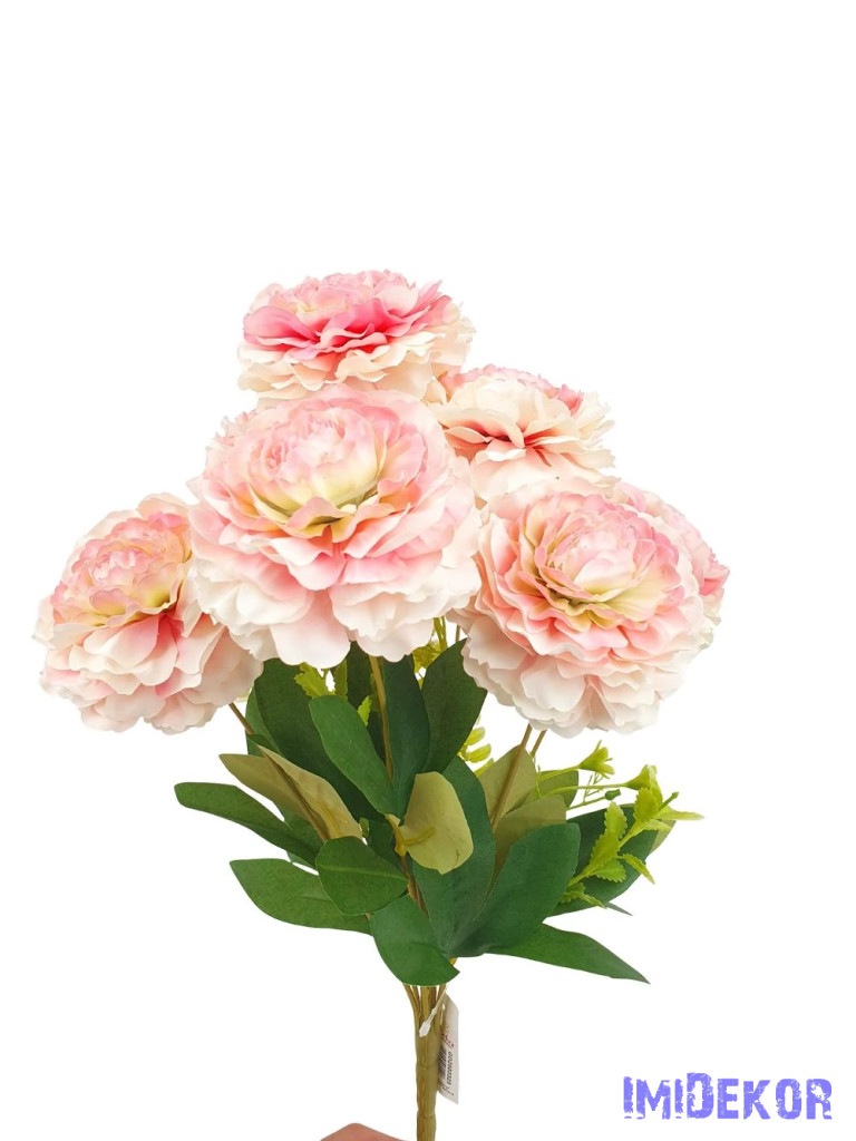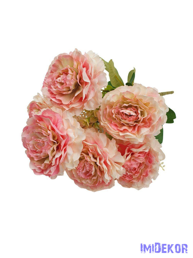 Fodros szirmú 9 nyílt fejes bazsarózsa csokor 42cm - Cirmos