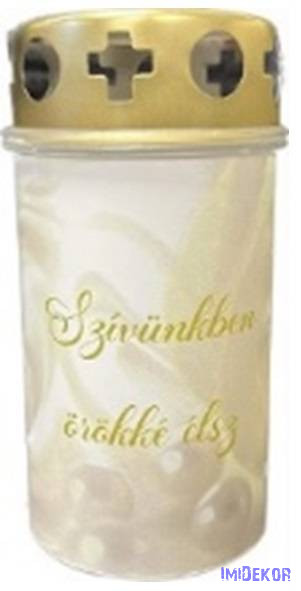 Műanyag fém fedeles mécses mintás 11,5x5,5cm - Szívünkben Örökké Élsz